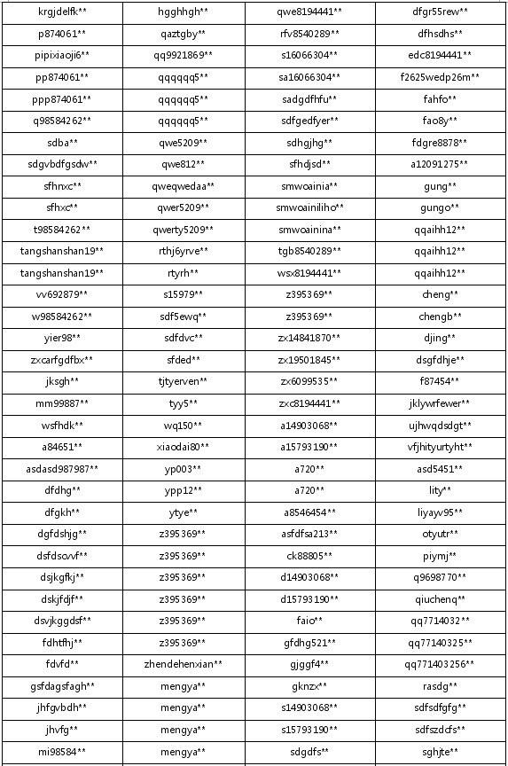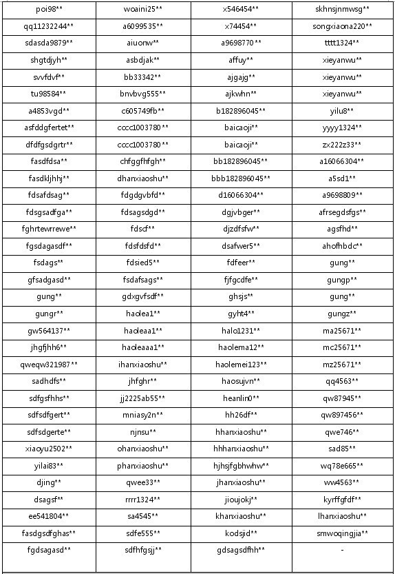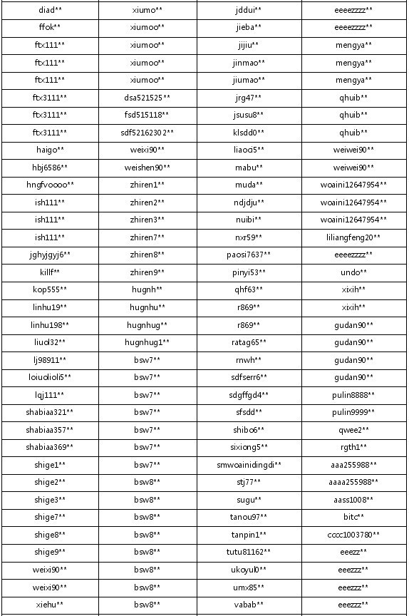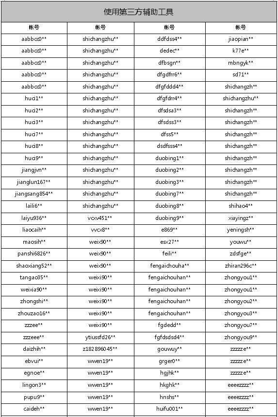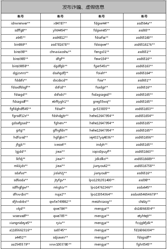 封停帐号如下:
