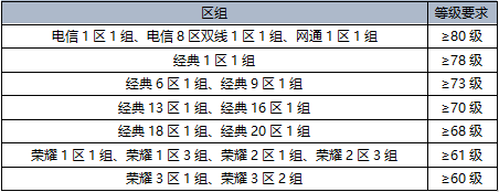 等级要求:(需在每个阶段的活动开始前达到以下等级要求,未达到活动等级要求时,系统不会计算在线时间)