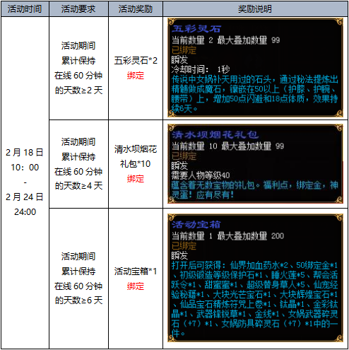 3.奖励均为绑定且将于活动结束后统一发放,发放时间为2月20日之前。