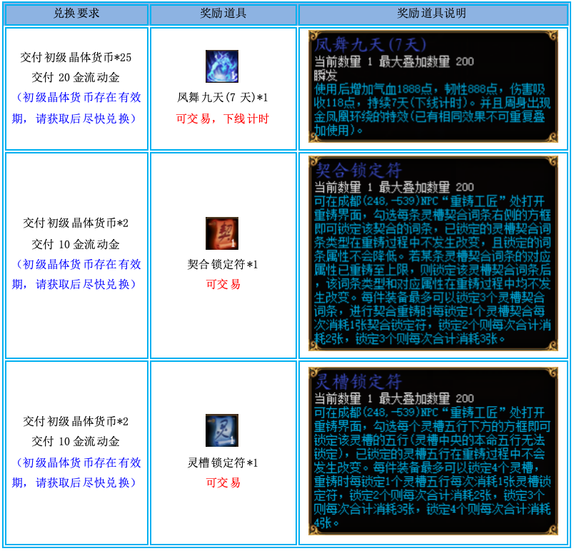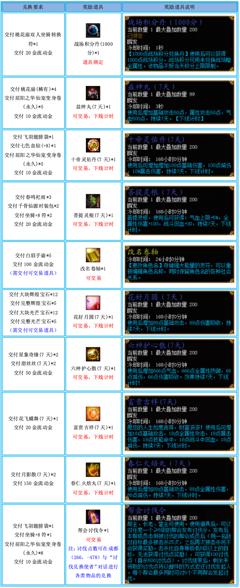 3、请在本次活动结束前进行兑换,活动结束后本次可兑换道具将全部下架。