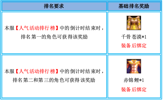4、“基础排名奖励”只要在【人气活动排行榜】倒计时结束时达到指定名次要求即可领取;