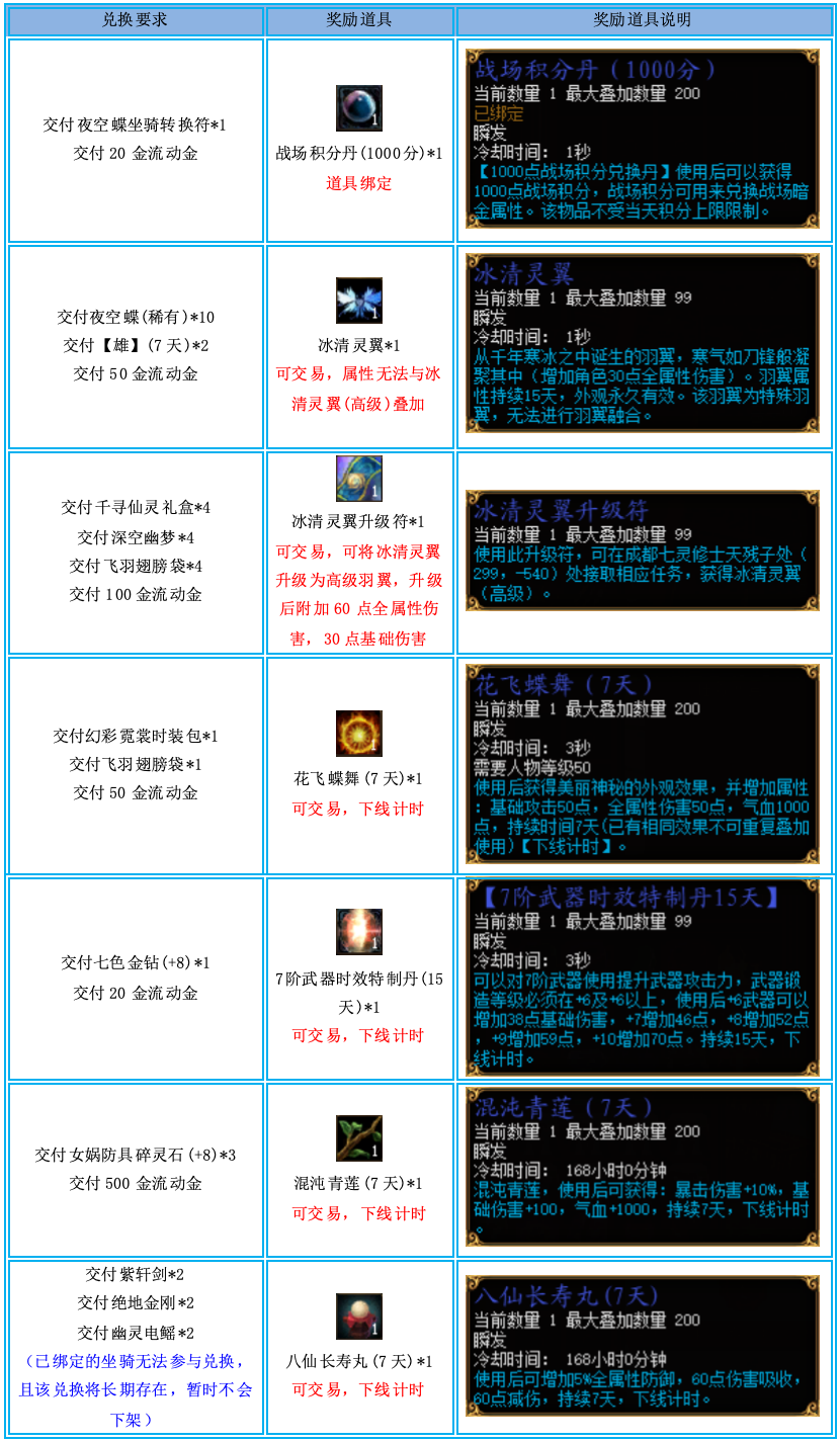 7、活动结束后所有道具将会下架,请有需要的玩家抓紧时间兑换!
