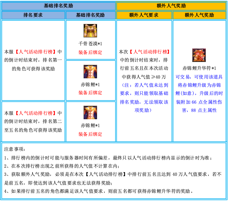 2、本活动开启前,角色已经获得的人气值不会计算在内,必须要在活动开启后获得的人气值才为有效;