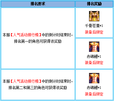 5、活动截止时间以服务器的【人气活动排行榜】中所显示的倒计时为准;