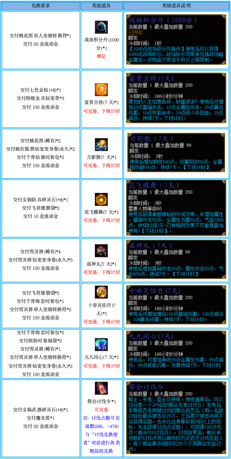 活动期间,NPC“藏宝阁阁主”处将上架以下道具可供兑换: