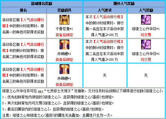 2、本活动开启前,角色已经获得的人气值不会计算在内,必须要在活动开启后获得的人气值才为有效;