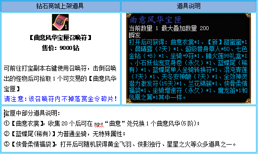 1、【曲意风华宝匣召唤符】仅限钻石商城购买,通过摆摊购买、互相交易、邮件领取、拍卖购买等非钻石商城购买方式获得的,不计算在活动内;