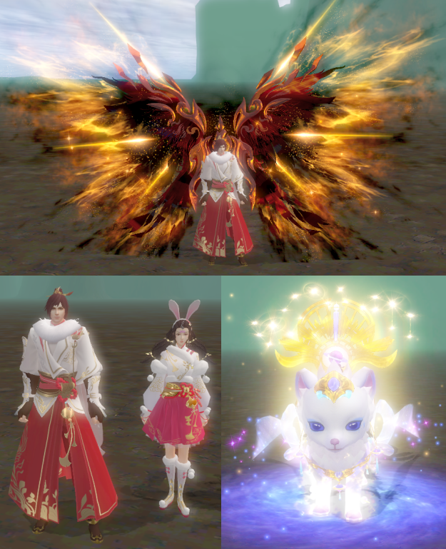 (仅展示破魔煌翼3阶、前兔似锦时装、瑞锦仙貂+10效果图)