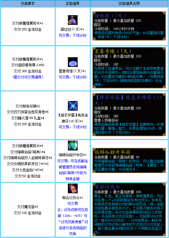 2、奖励兑换可重复完成,且所要求交付的道具不限制获取途径;