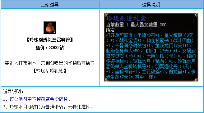 2、【玲珑剔透礼盒召唤符】仅限钻石商城购买,通过摆摊购买、互相交易、邮件领取、拍卖购买等非钻石商城购买方式获得的,均不计算在活动内;