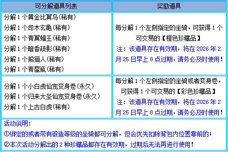 2、活动结束后,本次指定的道具将无法再进行分解,请有需要的玩家抓紧时间参与;