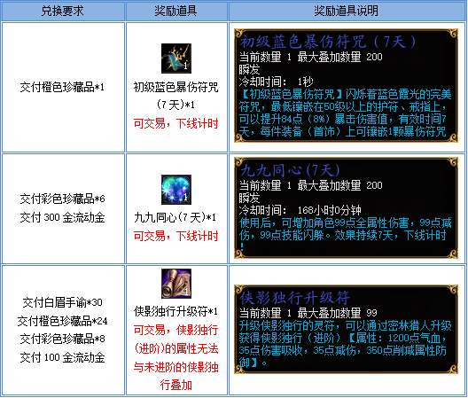 1、活动期间与“藏宝阁阁主”对话可兑换以下各类道具: