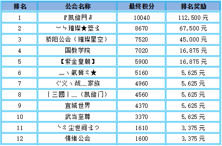 3.所展示的现金奖励不包含税金,发放奖励时将扣除获奖公会20%的个人所得税。