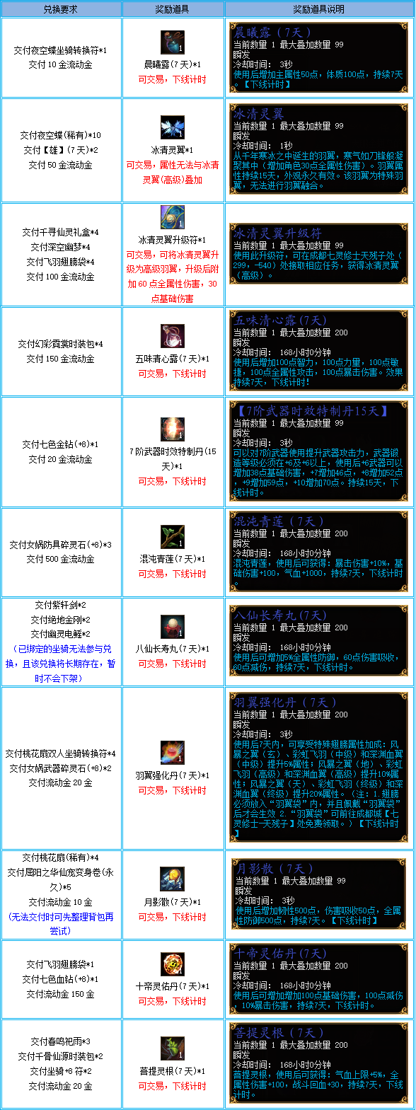 1、活动期间,可在NPC“藏宝阁阁主”处兑换以下道具: