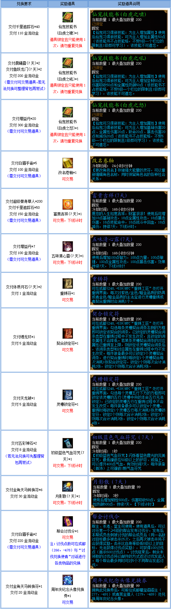 3、兑换获得的道具中,除【白虎之啸】、【白虎之吼】、【白虎之怒】这三本技能书为绑定,其余道具均可进行交易;